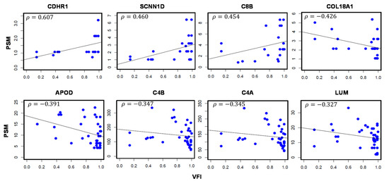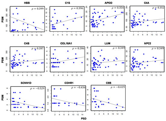 | UniProt ID | Gene Symbol | Description | Corr.coeff (ρ) | p-Value |
