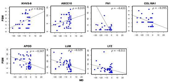 | P05090 | APOD | Apolipoprotein D | −0.347 | 0.016 |