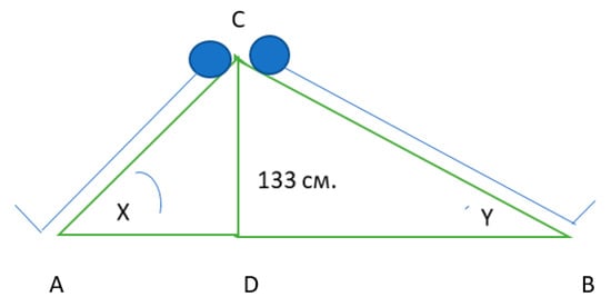 Two rectangular triangles of ACD and BCD are conditionally connected by catheters (CD) having one value of hydrostatic column height = 133 cm. The left triangle (Δ ACD) is a schematic representation of the orthostatic inclination of low height persons, hypotenuse of this triangle (AC) is the height of low subjects. The right rectangular triangle (Δ BCD) is for high subjects. The individual tilt angle is determined from the tables for rectangular triangles by the known value of the opposing cathetus equal to 133 cm and by the hypotenuse-height of the subject. An inclination angle X of 60° was set for the lowest test subjects, whose height was 150 cm. The tallest subject should have an inclination angle Y of 42° to obtain the standard height of the hydrostatic column. Using such a protocol (and hydrostatic column) solves two problems: 1. It reduces the risk of developing clinical manifestations of orthostatic disorders by setting the maximum inclination angle of 60° for the shortest subjects and 2. Standardizes the gravitational load by setting a standard value (133 cm) of the hydrostatic column height. Such standardization is crucial.