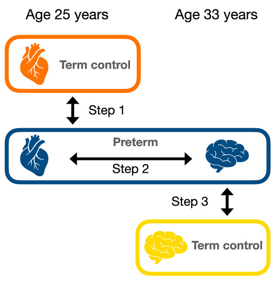 Until now, the effects of preterm birth on both cardiac and brain outcomes have been investigated separately. The underlying assumption is that early life factors associated with preterm birth, for example, the effect of early exposure to the extrauterine environment or injury during infancy [16], affect both organs independently. However, it is also possible that cardiovascular disease across the life span leads to abnormalities in the developing and adult brain [17].