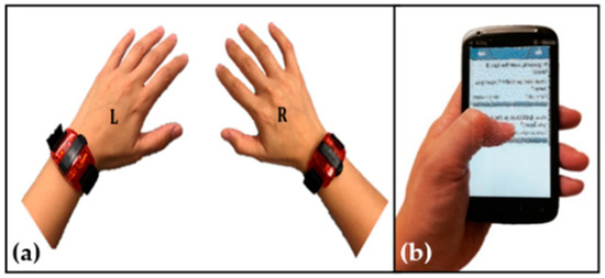 Device configuration of (a) accelerometers and (b) ecological momentary assessment (EMA) smartphone.