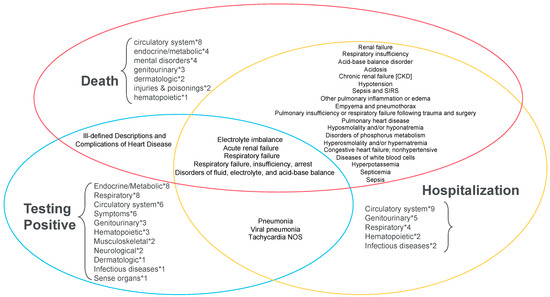 As of 15 January 2021, there were 23,759,743 confirmed COVID-19 cases in the US [11], representing approximately 25% of all global cases. Because COVID-19 is a respiratory disease and produces flu-like symptoms, the testing strategies in the US initially focused on those with symptoms, the elderly, and those with pre-existing conditions [12]—i.e., populations who are at risk of severe disease and complications. Only a handful of pre-existing comorbidities are known to be associated with experiencing adverse COVID-19-related outcomes. These pre-existing conditions include liver, kidney, heart, and respiratory disease [2,13,14,15,16,17].