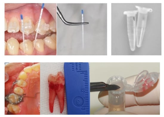 - Sugimori, T.; Yamaguchi, M.; Shimizu, M.; Kikuta, J.; Hikida, T.; Hikida, M.; Murakami, Y.; Suemitsu, M.; Kuyama, K.; Kasai, K. Micro-osteo perforations accelerate orthodontic tooth movement by stimulating periodontal ligament cell cycles. Am. J. Orthod. Dentofac. Orthop. 2018, 154, 788–796. [Google Scholar] [CrossRef] [PubMed]