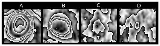 For the purposes of the method, in order to enable a coherent description of the transformed PET sequences (see Figure 2 and Figure 3), we defined the features that described the graphic structures visible in the area of the pulmonary nodules. With those visual features, we could obtain information that was useful in assessing the characteristics of the lesions.