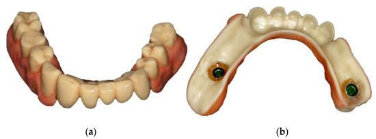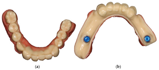 The following are available online at https://www.mdpi.com/article/10.3390/jcm10071458/s1, Figure S1: X-ray of the implants set into the lower jaw with impression posts, Figure S2: Occlusal view of the lower jaw after implant insertion and locator abutments.