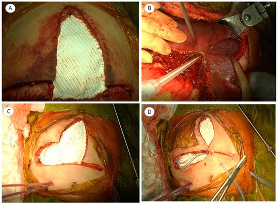 - Jafri, M.A.; Tevar, A.D.; Lucia, M.; Thambi-Pillai, T.; Karachristos, A.; Trumbull, L.; Buell, J.F.; Thomas, M.J.; Hanaway, M.J.; Woodle, E.S.; et al. Temporary silastic mesh closure for adult liver transplantation: A safe alternative for the difficult abdomen. Liver Transplant. 2007, 13, 258–265. [Google Scholar] [CrossRef] [PubMed]