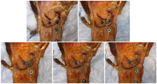 - Park, I.J.; Maniglio, M.; Shin, S.S.; Lim, D.; McGarry, M.H.; Lee, T.Q. Internal Bracing Augmentation for Scapholunate Interosseous Ligament Repair: A Cadaveric Biomechanical Study. J. Hand Surg. Am. 2020, 45, 985.e1–985.e9. [Google Scholar] [CrossRef]