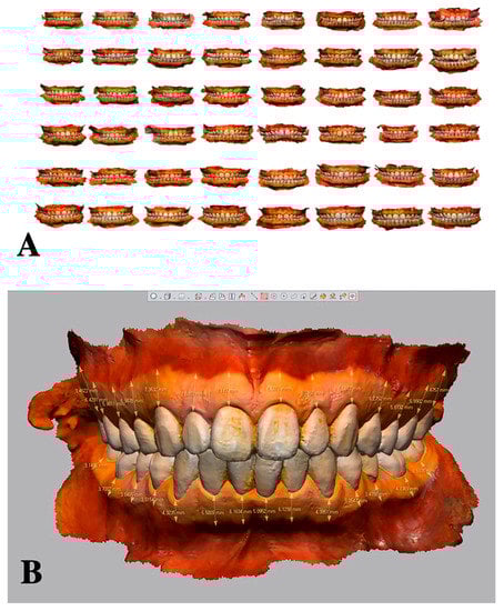 Intraoral scanning and measurement. (A) Intraoral scanning of the included participants, (B) measurement.