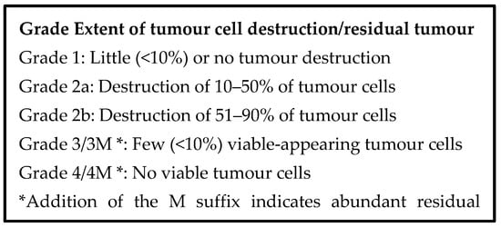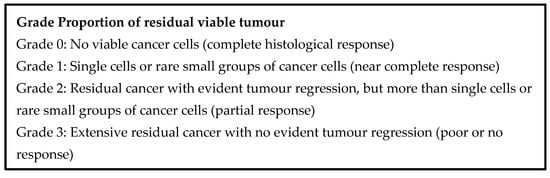 - Chatterjee, D.; Katz, M.H.; Rashid, A.; Varadhachary, G.R.; Wolff, R.A.; Wang, H.; Lee, J.E.; Pisters, P.W.; Vauthey, J.N.; Crane, C.; et al. Histologic grading of the extent of residual carcinoma following neoadjuvant chemoradiation in pancreatic ductal adenocarcinoma: A predictor for patient outcome. Cancer 2012, 118, 3182–3190. [Google Scholar] [CrossRef] [PubMed]