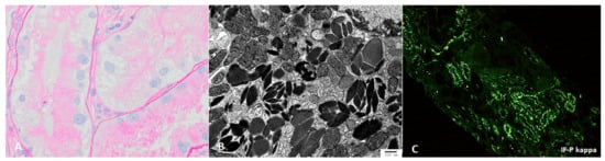 - Stokes, M.B.; Valeri, A.M.; Herlitz, L.C.; Khan, A.M.; Siegel, D.S.; Markowitz, G.S.; D’Agati, V.D. Light Chain Proximal Tubulopathy: Clinical and Pathologic Characteristics in the Modern Treatment Era. J. Am. Soc. Nephrol. 2015, 27, 1555–1565. [Google Scholar] [CrossRef]