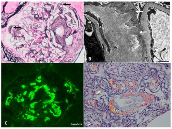 - Sethi, S.; Rajkumar, S.V.; D’Agati, V.D. The Complexity and Heterogeneity of Monoclonal Immunoglobulin–Associated Renal Diseases. J. Am. Soc. Nephrol. 2018, 29, 1810–1823. [Google Scholar] [CrossRef]