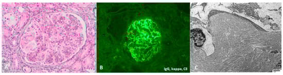- Zand, L.; Kattah, A.; Fervenza, F.C.; Smith, R.J.; Nasr, S.H.; Zhang, Y.; Vrana, J.A.; Leung, N.; Cornell, L.D.; Sethi, S. C3 Glomerulonephritis Associated With Monoclonal Gammopathy: A Case Series. Am. J. Kidney Dis. 2013, 62, 506–514. [Google Scholar] [CrossRef] [PubMed]