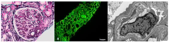 - Gumber, R.; Cohen, J.B.; Palmer, M.B.; Kobrin, S.M.; Vogl, D.T.; Wasserstein, A.G.; Nasta, S.D.; Bleicher, M.B.; Bloom, R.D.; Dember, L.; et al. A clone-directed approach may improve diagnosis and treatment of proliferative glomerulonephritis with monoclonal immunoglobulin deposits. Kidney Int. 2018, 94, 199–205. [Google Scholar] [CrossRef]