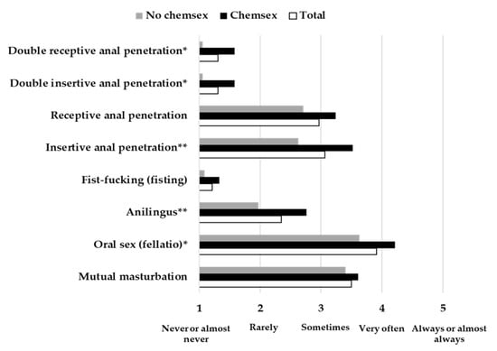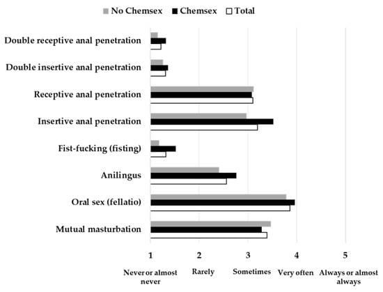 3.3. Sexual Practices of Participants with Occasional Sexual Partners (n = 68) and Differences Based on Chemsex Practice