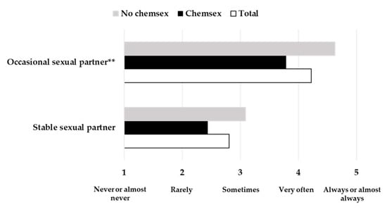 3.4. Differences in Condom Use between Participants Who Practiced Chemsex and Those Who Did Not