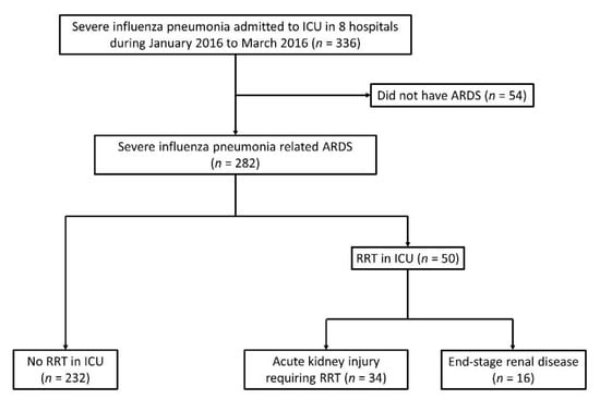 Previous studies have evaluated the outcomes of influenza induced ARDS patients with AKI [,], but the studies for the influence of RRT is scanty. We conducted a multicenter, retrospective study of patients admitted to ICUs due to influenza with ARDS.