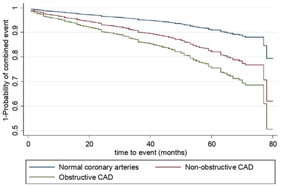 Thus, the objective of this study was to assess the long-term (minimum two years) cardiovascular prognosis that was associated with non-obstructive CAD, as compared to the absence of CAD and to the presence of obstructive CAD, in an extensive sample of patients undergoing invasive angiography for screening of ischaemic heart disease, stratifying by sex, the presence of diabetes mellitus, and the clinical indication for the angiography.