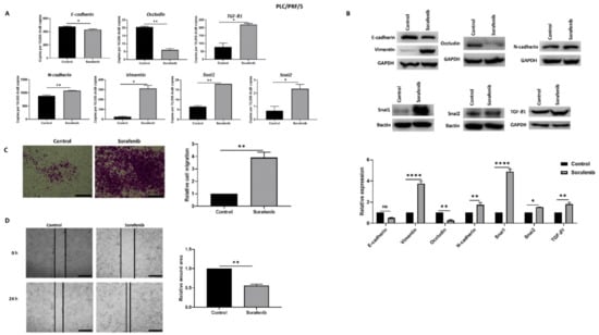 3.1. HCC Cells Undergo EMT upon Sorafenib Exposure