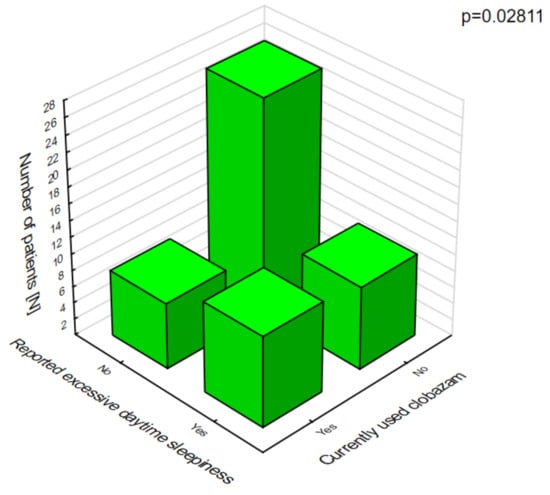 In patients on clobazam, excessive daytime sleepiness (Figure 8) and ataxia (Figure 9) occurred significantly more often compared with patients who were not given this drug.