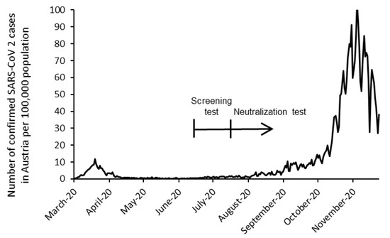 - Medical University of Vienna. Coronavirus SARS-Cov-2 Seroprävalenzstudie Bei 1655 Erwerbstätigen Erwachsenen in Einem Österreichischen Unternehmen: Immunitätslage von Berufstätigen Mit Verschiedenen Demographischen Faktoren und Arbeitsverhältnissen. Available online: https://www.meduniwien.ac.at/hp/fileadmin/tropenmedizin/Dokumente_Barbara/News/2020_07_05_Endbericht_Seropr%C3%A4valenz_MedUniWien.pdf (accessed on 8 January 2021).