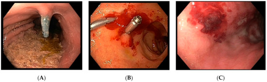 - Troland, D.; Stanley, A. Endotherapy of Peptic Ulcer Bleeding. Gastrointest. Endosc. Clin. N. Am. 2018, 28, 277–289. [Google Scholar] [CrossRef] [PubMed]