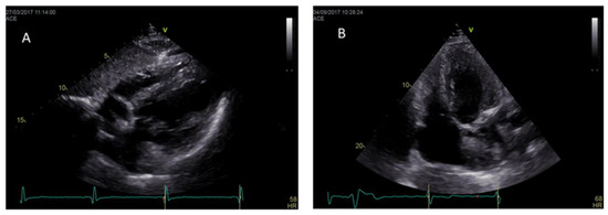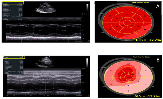 - Morris, D.A.; Blaschke, D.; Canaan-Kühl, S.; Krebs, A.; Knobloch, G.; Walter, T.C.; Haverkamp, W. Global cardiac alterations detected by speckle-tracking echocardiography in Fabry disease: Left ventricular, right ventricular, and left atrial dysfunction are common and linked to worse symptomatic status. Int. J. Cardiovasc. Imaging 2015, 31, 301–313. [Google Scholar] [CrossRef] [PubMed]
