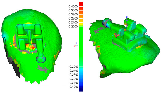 Illustration of the output from the superimposition in Geomagic Control® software (3D Systems Inc., Rock Hill, SC, USA) for tooth 13 of a random patient.