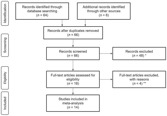 - Moher, D.; Shamseer, L.; Clarke, M.; Ghersi, D.; Liberati, A.; Petticrew, M.; Shekelle, P.; Stewart, L.A.; PRISMA-P Group. Preferred reporting items for systematic review and meta-analysis protocols (PRISMA-P) 2015 statement. Rev. Esp. Nutr. Hum. Diet. 2016, 20, 148–160. [Google Scholar] [CrossRef] [PubMed]