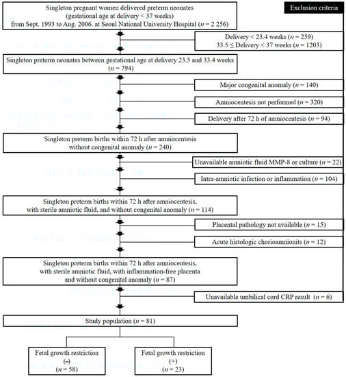 APA StyleMoon, K. C., Park, C.-W., Park, J. S., & Jun, J. K. (2021). Fetal Growth Restriction and Subsequent Low Grade Fetal Inflammatory Response Are Associated with Early-Onset Neonatal Sepsis in the Context of Early Preterm Sterile Intrauterine Environment. Journal of Clinical Medicine, 10(9), 2018. https://doi.org/10.3390/jcm10092018