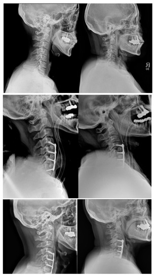 - Xing, R.; Liu, W.; Li, X.; Jiang, L.; Yishakea, M.; Dong, J. Characteristics of cervical sagittal parameters in healthy cervical spine adults and patients with cervical disc degeneration. BMC Musculoskelet. Disord. 2018, 19, 37. [Google Scholar] [CrossRef] [PubMed]