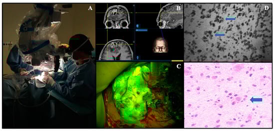 Despite the most recent therapeutic advancements, prognosis of brain tumors still remains poor [,]. Surgical resection represents a major component in the standard of care for the treatment of brain cancers. Various clinical studies have demonstrated that extent of resection (EOR) correlates with improved outcomes, especially in conjunction with adjuvant therapies such as radio-chemotherapy [,]. Nonetheless, achieving a complete tumor removal is not always feasible, since distinction between normal and pathological tissue is often difficult, especially when approaching tumor margins [].