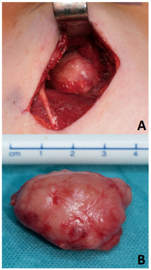 - Mantsopoulos, K.; Iro, A.K.; Sievert, M.; Muller, S.K.; Agaimy, A.; Schapher, M.; Koch, M.; Iro, H. Is extracapsular dissection for pleomorphic adenoma rather a euphemism for enucleation that jeopardises the intactness of the capsule? Br. J. Oral Maxillofac. Surg. 2021. [Google Scholar] [CrossRef]