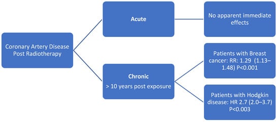 - Filopei, J.; Frishman, W. Radiation-Induced Heart Disease. Cardiol. Rev. 2012, 20, 184–188. [Google Scholar] [CrossRef] [PubMed]