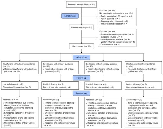 - Juvin, P.; Vadam, C.; Malek, L.; Dupont, H.; Marmuse, J.P.; Desmonts, J.M. Postoperative recovery after desflurane, propofol, or isoflurane anesthesia among morbidly obese patients: A prospective, randomized study. Anesth. Analg. 2000, 91, 714–719. [Google Scholar] [CrossRef] [PubMed] [Green Version]
