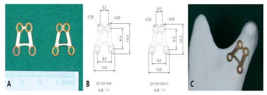 - Meyer, C.; Martin, E.; Kahn, J.L.; Zink, S. Development and biomechanical testing of a new osteosynthesis plate (TCP) designed to stabilize mandibular condyle fractures. J. Cranio-Maxillofac. Surg. 2007, 35, 84–90. [Google Scholar] [CrossRef] [PubMed]