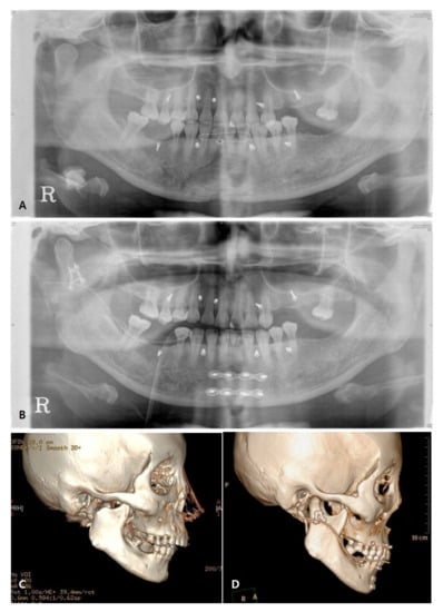 - Wilk, A.; Biotchane, I.; Rosenstiel, M. Surgical treatment of subcondylar process fractures using a rectangular plate for 3-dimensional stabilization. Revue de Stomatologie et de Chirurgie Maxillo Faciale 1997, 98, 40. [Google Scholar]