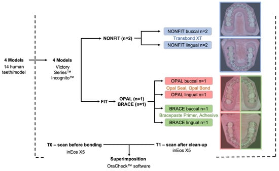 - Stadler, O.; Dettwiler, C.; Meller, C.; Dalstra, M.; Verna, C.; Connert, T. Evaluation of a Fluorescence-Aided Identification Technique (FIT) to Assist Clean-up after Orthodontic Bracket Debonding. Angle Orthod. 2019, 89, 876–882. [Google Scholar] [CrossRef] [PubMed] [Green Version]
