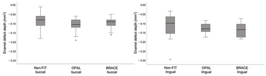 - Eichenberger, M.; Iliadi, A.; Koletsi, D.; Eliades, G.; Verna, C.; Eliades, T. Enamel Surface Roughness after Lingual Bracket Debonding: An In Vitro Study. Materials 2019, 12, 4196. [Google Scholar] [CrossRef] [PubMed] [Green Version]