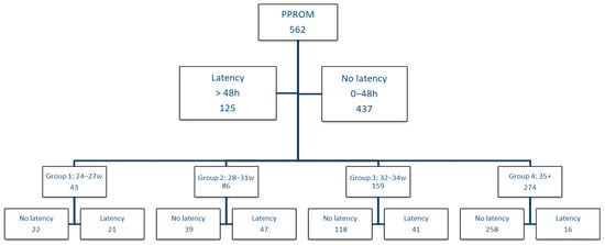 The importance of the latency period regarding the delivery is also pointed out by the maternal evolution. A retrospective cohort study conducted by Bendix et al. reported that major maternal complications occurred in 59% of PPROMs between 22–27 GA and 9% in PPROMs of 28–33 GA [31].