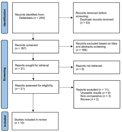 - Page, M.J.; McKenzie, J.E.; Bossuyt, P.M.; Boutron, I.; Hoffmann, T.C.; Mulrow, C.D.; Shamseer, L.; Tetzlaff, J.M.; Akl, E.A.; Brennan, S.E.; et al. The PRISMA 2020 statement: An updated guideline for reporting systematic reviews. BMJ 2021, 372, n71. [Google Scholar] [CrossRef]