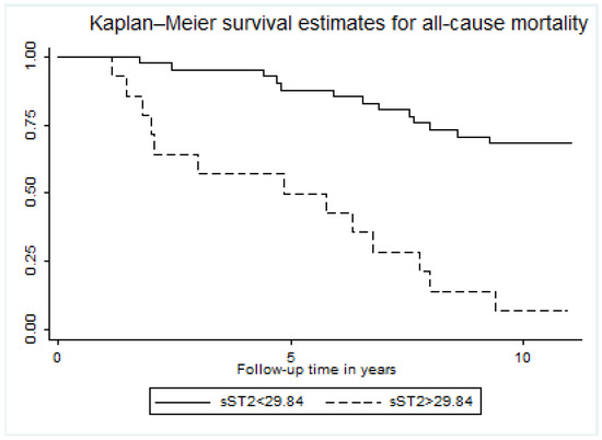 sST2 was quantified using the human ST2/IL-1 R4 DuoSet® ELISA Kit (R&D Systems, Minneapolis, MN, USA) [12,14,25].