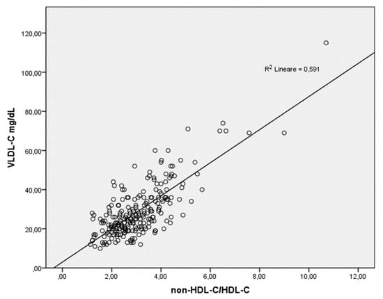 Correlation between non-HDL-C/HDL-C and VLDL-C.