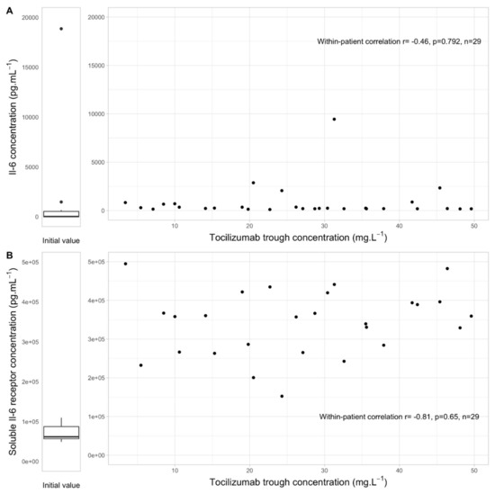 3.3. Link between Tocilizumab Trough Concentrations, IL6 and sIL6-R Levels