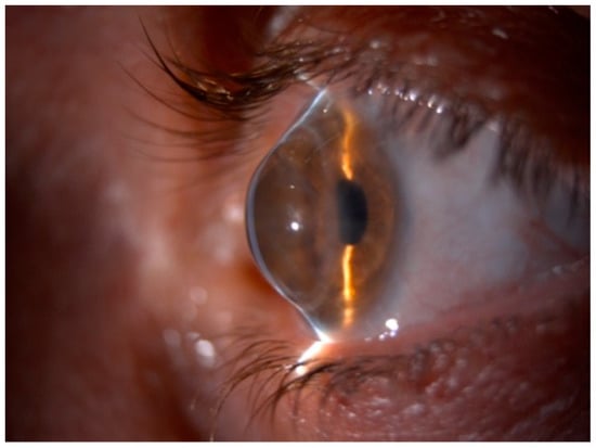 Another option is scleral CL, which is known to improve visual function in patients with corneal irregularity [33]. Their primary characteristic is that they do not touch the cornea and limbus as they rest on the sclera, leaving a clear area between the CL and the cornea. The advantages provided are good centration, stability, and improved visual acuity [8]. The development of rigid gas-permeable plastics has significantly reduced the hypoxic complications associated with daily wear of CL. In this way, scleral lenses can improve vision in patients with markedly irregular corneas.