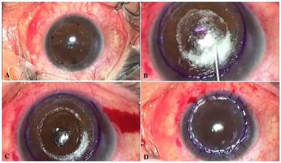 - Patel, A.K.; Scorcia, V.; Kadyan, A.; Lapenna, L.; Ponzin, D.; Busin, M. Microkeratome-Assisted Superficial Anterior Lamellar Keratoplasty for Anterior Stromal Corneal Opacities After Penetrating Keratoplasty. Cornea 2012, 31, 101–105. [Google Scholar] [CrossRef] [PubMed]
