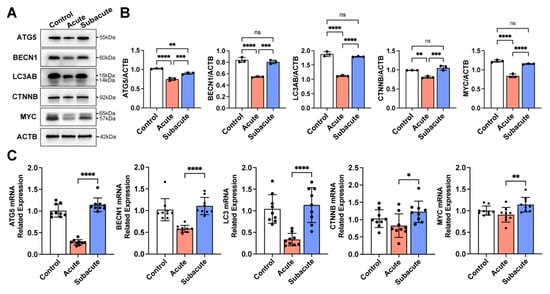 3.2. Autophagy-Related Proteins Differentially Expressed in Acute and Subacute TBI Brain Extracts