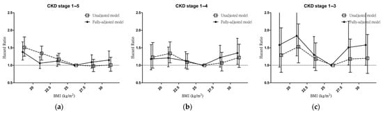 3.5. Association between Body Mass Index and Renal Outcomes in Terms of Chronic Kidney Disease Stage