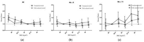 3.7. Association between Body Mass Index, Renal Outcomes, and Mortality According to Hb Levels among Patients with Chronic Kidney Disease Stages 4 and 5