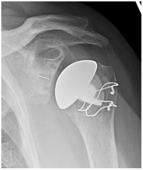 - Rasmussen, J.V.; Olsen, B.S.; Al-Hamdani, A.; Brorson, S. Outcome of Revision Shoulder Arthroplasty After Resurfacing Hemiarthroplasty in Patients with Glenohumeral Osteoarthritis. J. Bone Jt. Surg. 2016, 98, 1631–1637. [Google Scholar] [CrossRef] [PubMed]
