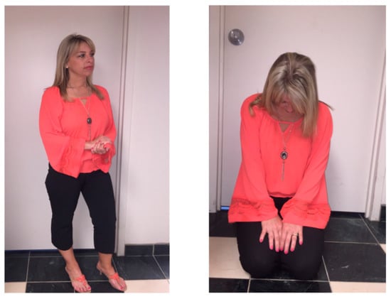 Photos were taken of the worst posture first, since that pose would be more consonant with painful or difficult experiences and, thus, might make the task easier to understand initially.